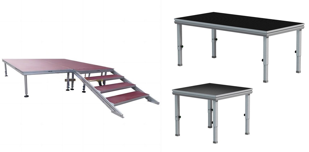- Die Plattform lässt sich problemlos vergrößern oder verkleinern, um unterschiedlichen Bühnenkonfigurationen und Veranstaltungsanforderungen gerecht zu werden. Diese Vielseitigkeit ermöglicht eine größere Flexibilität bei der Wahl des Veranstaltungsortes und der Bühnengestaltung.